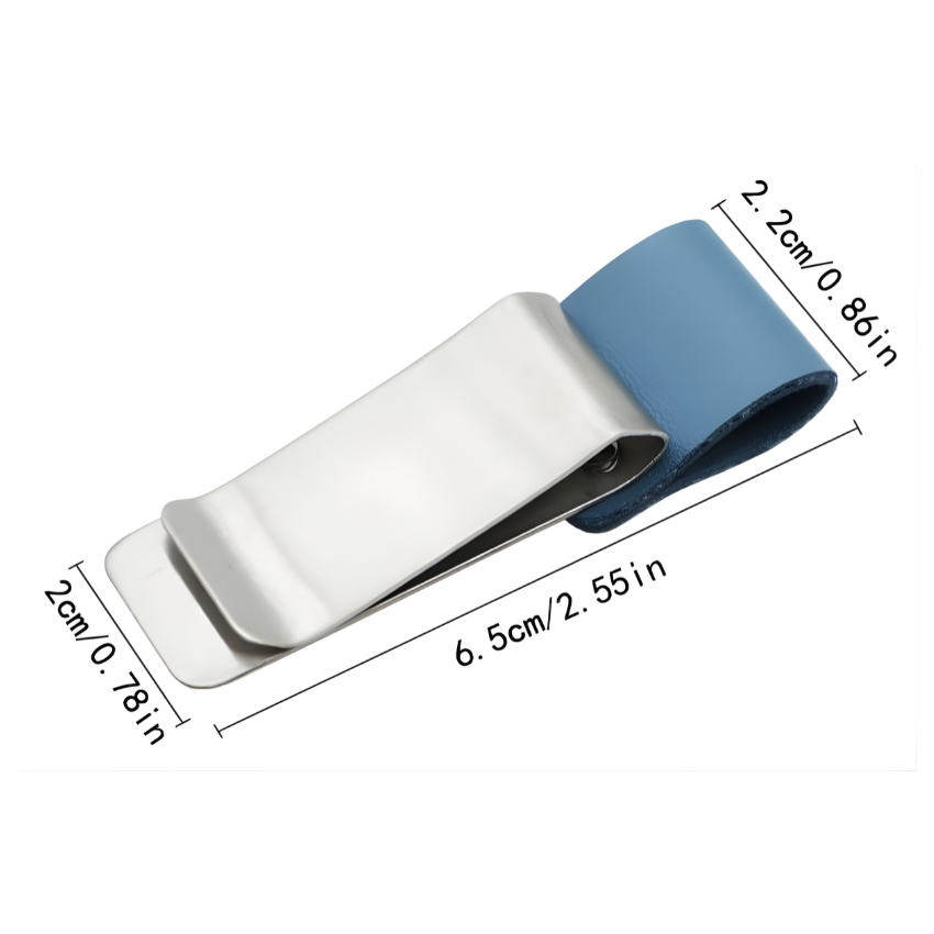 The pen holder money clip is made from durable stainless steel combined with PU leather, offering a slim and portable design that fits seamlessly into everyday work environments. Its metal front surface is ideal for laser engraved logo customization, allowing brands to create personalized pen holders and money clips for corporate gifts, promotional giveaways, and branded office accessories.